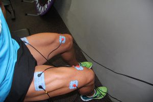 Debes usar una colocación especial de los electrodos para corregir el desequilibrio. Míralo en el vídeo. Fíjate que usarás tres cables, ya que al trabajar con la pierna estirada se recluta menos fibra y lo subsanamos añadiendo el tercer canal en el recto anterior.