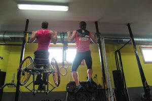 Se trata de unas clases únicas en el mundo. Sí, sí!! En todo el MUNDO. Es un entrenamiento que nuestros técnicos (entrenadores licenciados) dirigen la clase. Uno de ellos la hace de pie, para todas las personas que pueden hacerla, y el otro de los entrenadores personales, la hace sentado en la silla de ruedas, para todas aquellas personas que tienen una movilidad reducida o diversidad funcional.