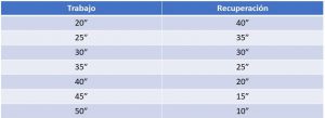 Vas a hacer un entrenamiento tipo circuito, las 3 primeras semanas haz 3 vueltas de 20″ de trabajo y 40″ de descanso (20″-40″rec)